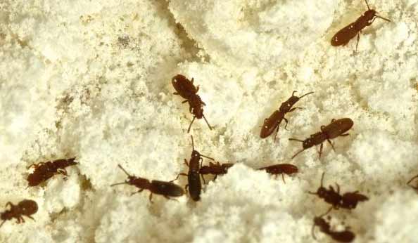 این آفات را غالباً در خانه یا در لبۀ پنجره و یا در حیاط منزل مشاهده می کنیم. این گونه از سوسک ها را سوسک آبدارخانه pantry pests و یا آفات محصولات انباری stored-product pests می نامند. برخی از گونه‌های سوسک محصولات یا ساختمان ها را نابود می‌کنند، در حالی که برخی از گونه‌ها در تجزیه باقی مانده مواد عالی در طبیعت کمک می‌کنند، درختان مرده را بخورند یا به گل‌ها کمک به گرده‌افشانی کنند. این آفات بیشتر در محل هایی حاوی مواد غذایی انبار شده، جهت تغذیه مستقر می شوند. Red Flour beetle و Confused Flour beetle سوسک قرمز آرد و سوسک گیج آرد دو نمونه از بیتل هایی هستند که به صورت مکرر در مکان هایی مانند آشپزخانه و بخصوص در کابینت هایی که مواد خوراکی خشک در آن نگهداری می شود، بیشتر مشاهده می شوند و پس از افزایش شدت آلودگی به داخل اتاق ها منتقل می شوند. این دو آفت از گونه بیتل جزء شایع ترین و مضرترین آفات موجود در کارخانجات تولید آرد می باشد. این آفات از حبوبات، غلات، برنج، غذای خشک حیوانات خانگی و سایر مواد خوراکی خشک تغذیه می کنند و باعث ایجاد آلودگی در محصولات خوراکی می شوند. این آفت ها از طریق خرید خشکبار و حبوبات فله ای یا بسته بندی وارد منازل شده و بلافاصله جذب مواد خوراکی خشک شده و سپس به سرعت تکثیر پیدا می کند و جمعیت شان گسترش می یابد و از مواد خوراکی (نشاسته و فیبر) موجود در آن مکان تغذیه می کنند. کلیه مواد خوراکی خشک مانند برنج، گردو، حبوبات نگهداری شده، ادویه، سبزیجات خشک، خشکبار و.. در آشپزخانه مورد هجوم این آفت ها قرار دارد بخصوص مواد خوارکی خشکی که به صورت فله ای خریداری می شود و یا در ظروف آسیب پذیر و یا تنگ شیشه ای در جای گرم و مرطوب نگهداری می شود.   گونه دیگری از بیتل های شایع با نام سوسک داروخانه Drugstore beetle از داروها و یا چای ملین و سایر مواد خوراکی خشک موجود در محیط تغذیه می کنند. این آفات با هجوم به مواد خوراکی زیان های اقتصادی شدیدی را با خود به همره خواهند داشت. این گونه از بیتل ها با تغذیه از غلات و حبوبات بخصوص محصولات برداشت شده ، محصولات غذایی بسته بندی شده حیوانی و محصولات مشتق شده از گیاهان باعث انتقال آلودگی، ایجاد بوی نامطبوع ، تغییر رنگ و یا ایجاد طعم بد در آن ماده خوراکی شده و آسیب زیادی را به آن ها وارد می کنند. این آفات برای زنده ماندن به جز غلات، آجیل، ماکارونی، حبوبات و هزاران مواد خوراکی خشک ذخیره شده دیگر از مواد غیر خوراکی شامل کتاب، کاغذ دیواری و … جهت تغذیه استفاده می کنند. سوسک دارو عموماً قادر به جویدن قلع و فویل آلومینیمی نیز می باشد و از طریق تغدیه از چسب و خمیر به کار رفته در درز مبلمان آسیب های جبران ناپذیری را به وسایل موجود در منازل و موزه ها وارد می نماید. برخی از گونه های این آفت از سموم موجود در تله ای که برای سایر حشرات و جوندگان در محیط کار گذاشته شده تغذیه کرده بدون آنکه آسیبی به این آفات وارد شود. این آفات به سایر صنایع نیز آسیب زیادی وارد می کند، اگر چه در درجه اول به مواد خوراکی ذخیره شده موجود در آبدارخانه و آشپزخانه ها آسیب وارد می نماید . یکی دیگر از گونه های شایع بیتل ها، سوسک سیگار Cigarette beetles است که به دلیل تغدیه از توتون ، تنباکو و دخانیات به این نام معروف اند. سوسک غلۀ دندان اره ای Sawtoothed Grain beetles گونه دیگری از بیتل هاست که از طیف وسیعی از مواد خوراکی خشک تغذیه می کند و از طرفی یکی از قابلیت های این آفت جویدن بسته بندی مواد خوراکی از جنس کاغذ، مقوا، سلفون، پلاستیک، فویل و … می باشد و از این طریق به مواد خوراکی نیز دست پیدا می کند. این آفات پس از آسیب به مواد خوراکی با استفاده از قابلیتی که در پاهای خود دارند به سرعت از محل فرار کرده و از دید انسان ناپدید می شوند. این آفات اکثراً روی سطوح دیواره ها، لبه پنجره و یا سطوح کابینت ها باعث ایجاد آلودگی شدید می کند. این گونه از بیتل دارای آگاهی بالایی بوده و حتی ریزترین مواد غذایی را به راحتی پیدا می کنند و تنها راه کنترل این آفات رعایت بهداشت محیط م